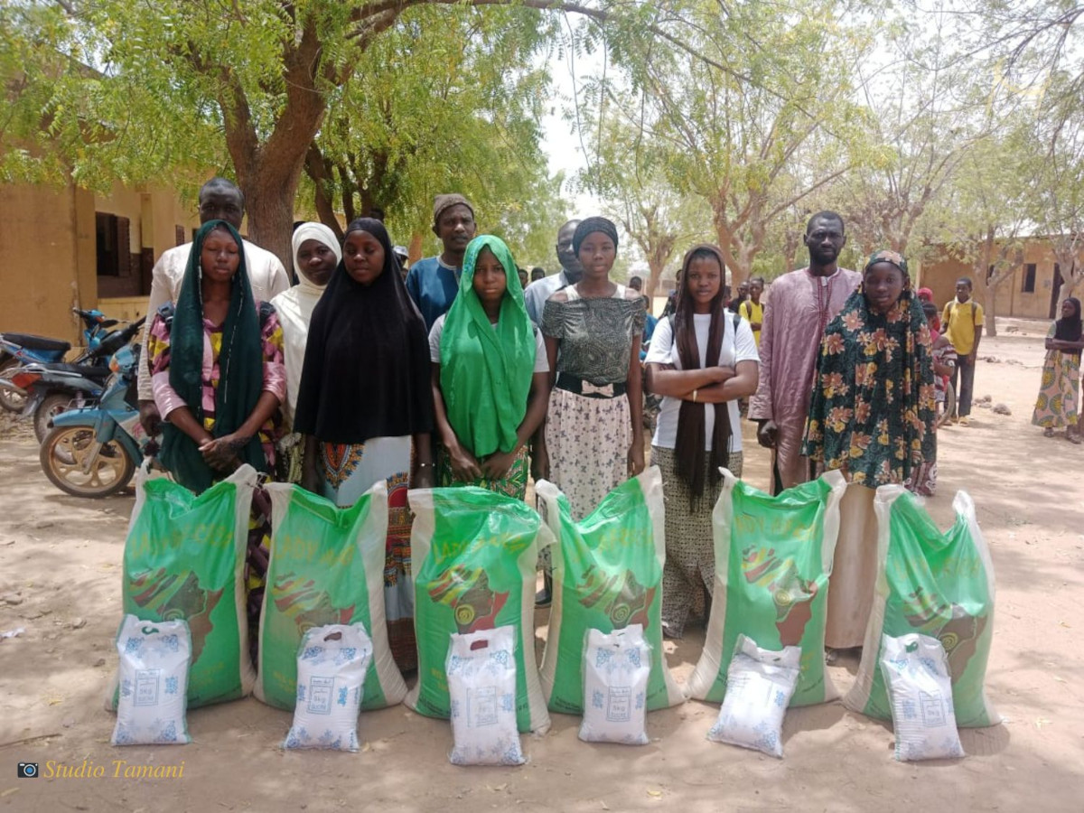 78 filles des écoles de Banamba et BENKADI ont reçu hier (06/04/2023) chacune un sac de riz de 50kg et 05 kg de sucre. Le don a été offert par l’ONG FANDEEMA de Koulikoro à travers son projet d’appui à la scolarisation et le maintien des filles à l’école. Il est financé par l’ONG SWEED.