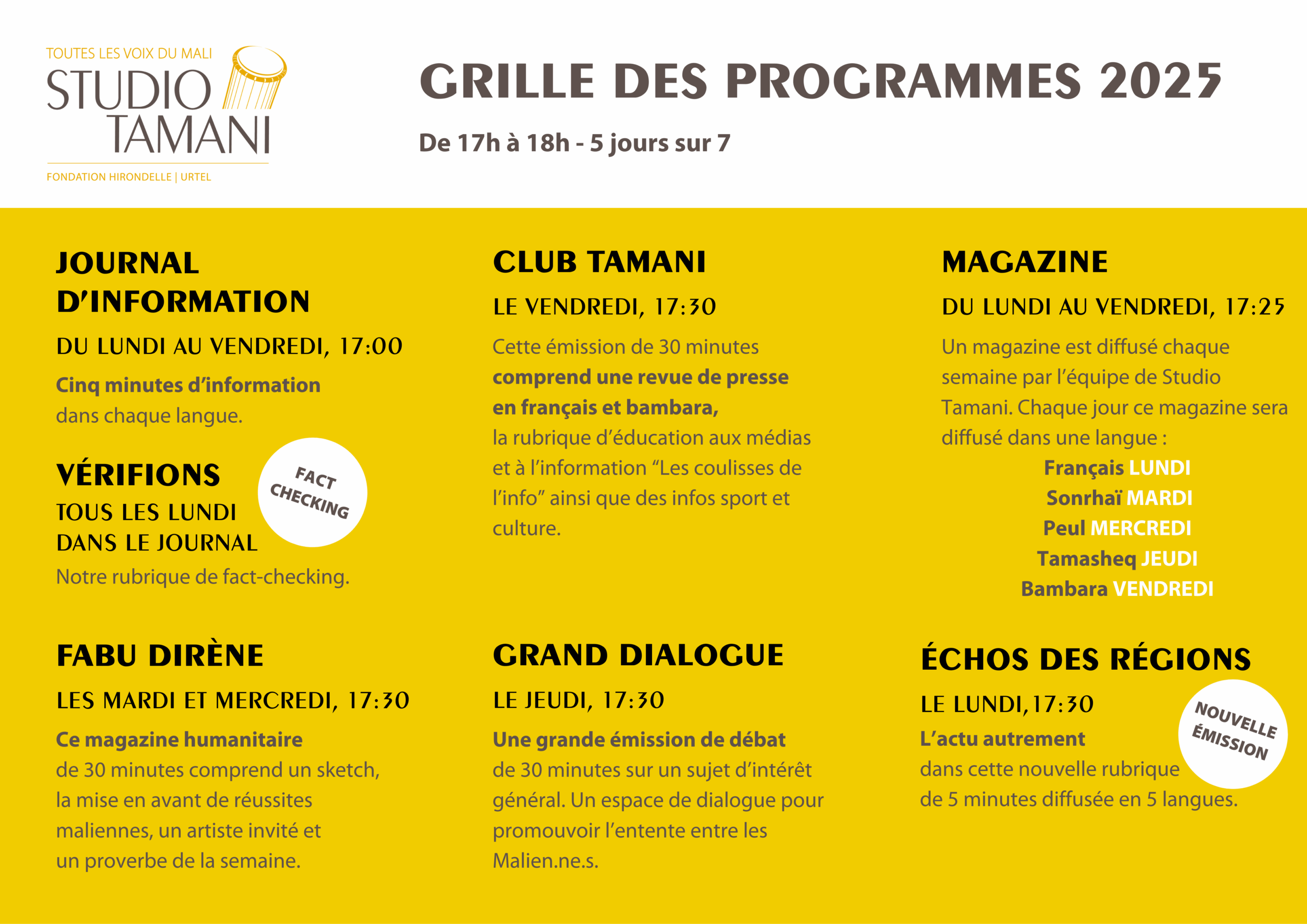 Informations, débats, magazines : toute l’actualité du Mali, en 5 langues